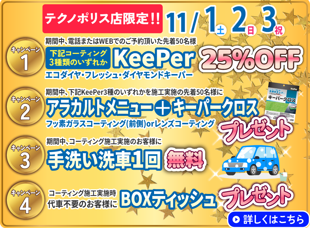宇都宮・鹿沼・さくら市キーパー14560円/HP割20%/格安カーコーティング 壬生町 芳賀町 高根沢町近く